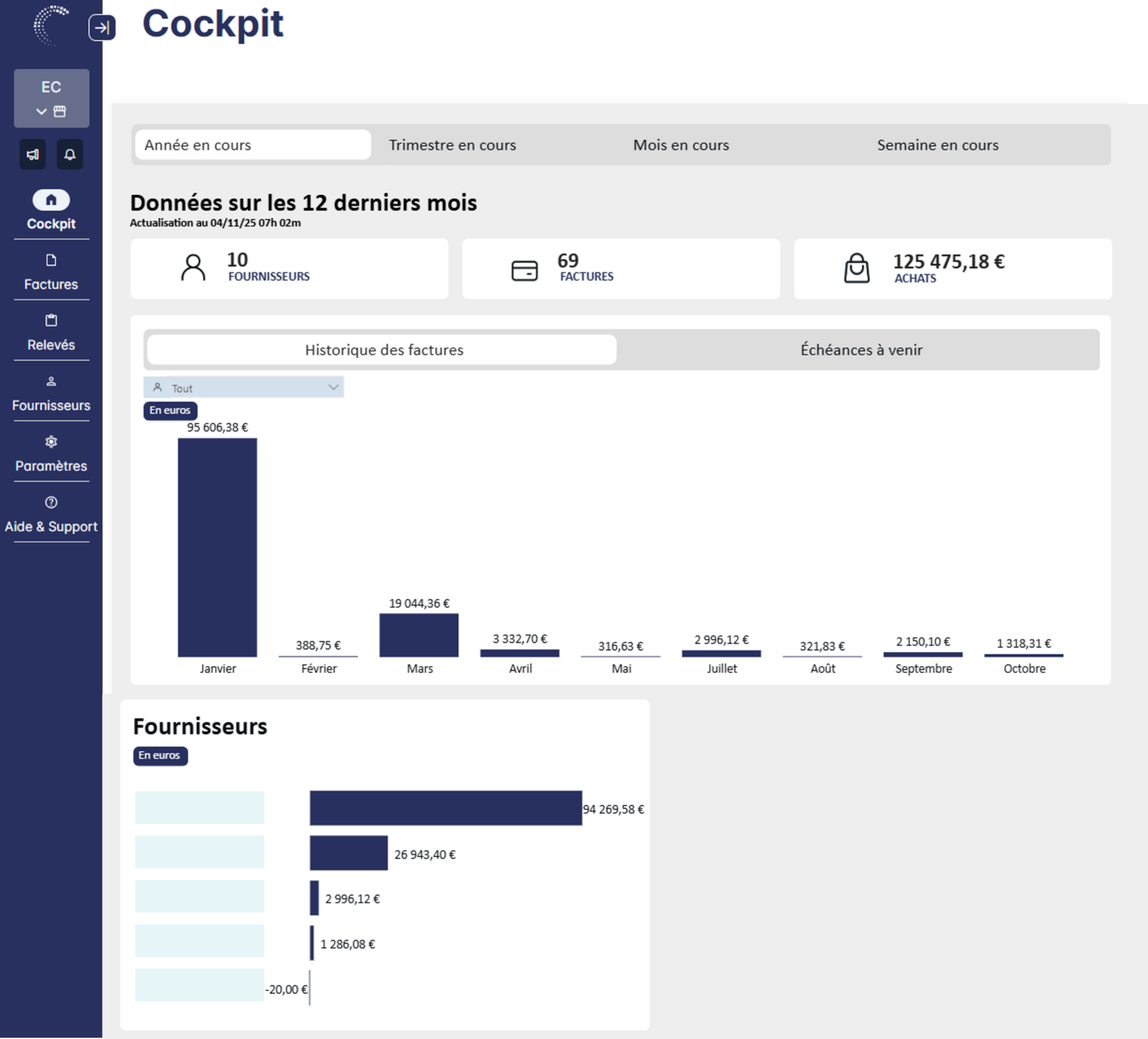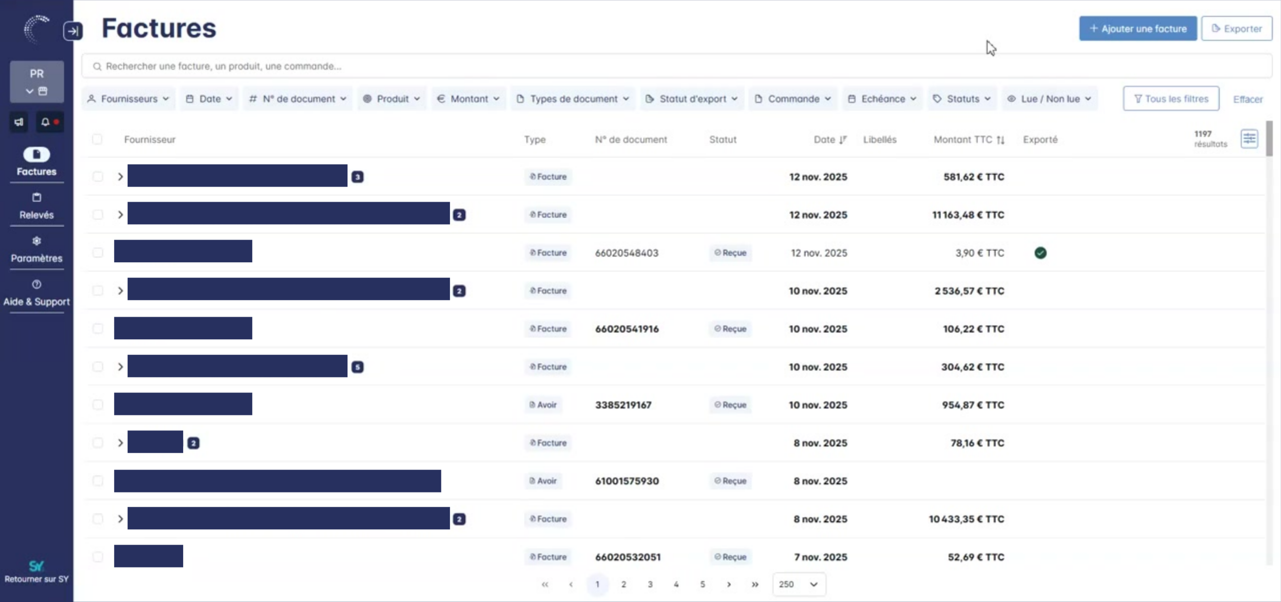 • Collecte automatique de toutes les factures (SY, emails, imports, espaces fournisseurs)